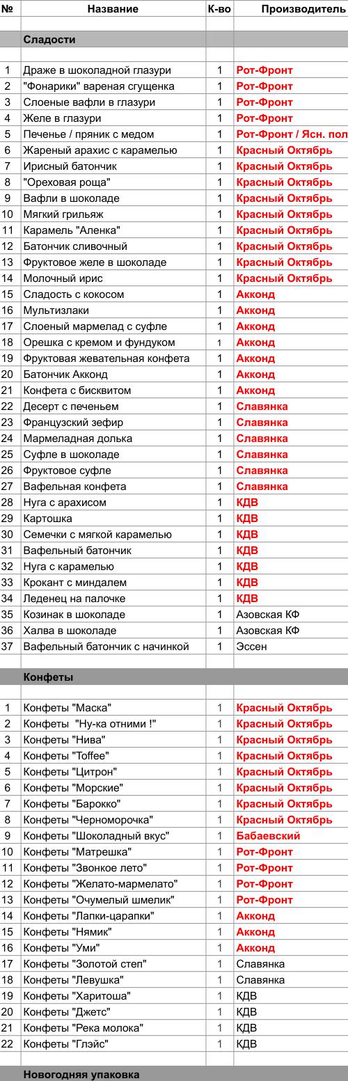 1. Проверить, можно ли внести изменения в состав подарка. Если нет, то скорее всего наборы были собраны еще летом из конфет, произведенных еще раньше